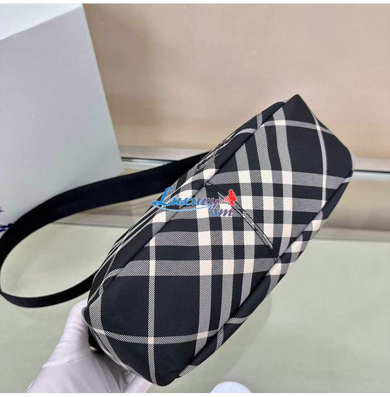 버버리 체크가 돋보이는 크로스바디 백. 기마상 디