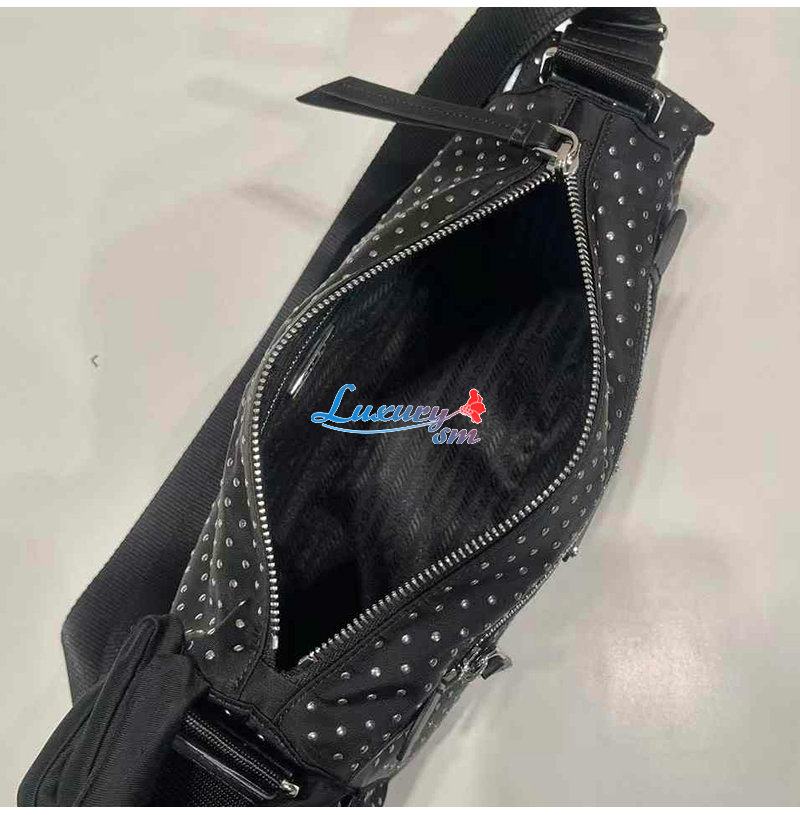 [스페셜오더]PRADA-1BC236 프라다 블랙 스터드 장식 리나일론 백