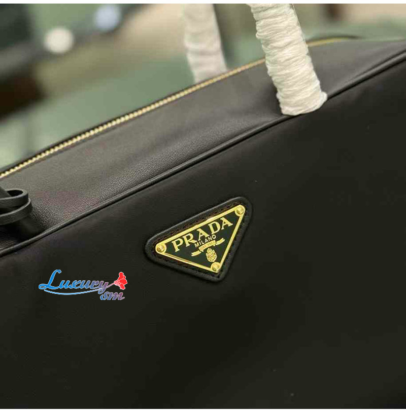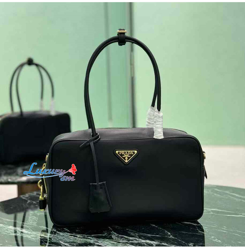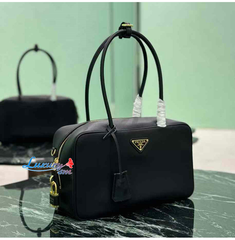 [스페셜오더]PRADA-1BB132 프라다 블랙 미디엄 리나일론 가죽 탑 핸들 백