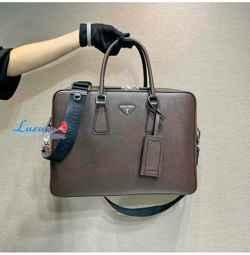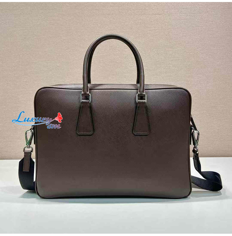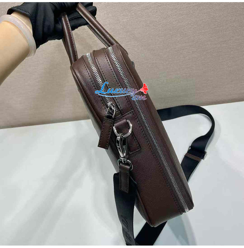 [스페셜오더]PRADA-2VE022 프라다 커피 사피아노 가죽 브리프케이스