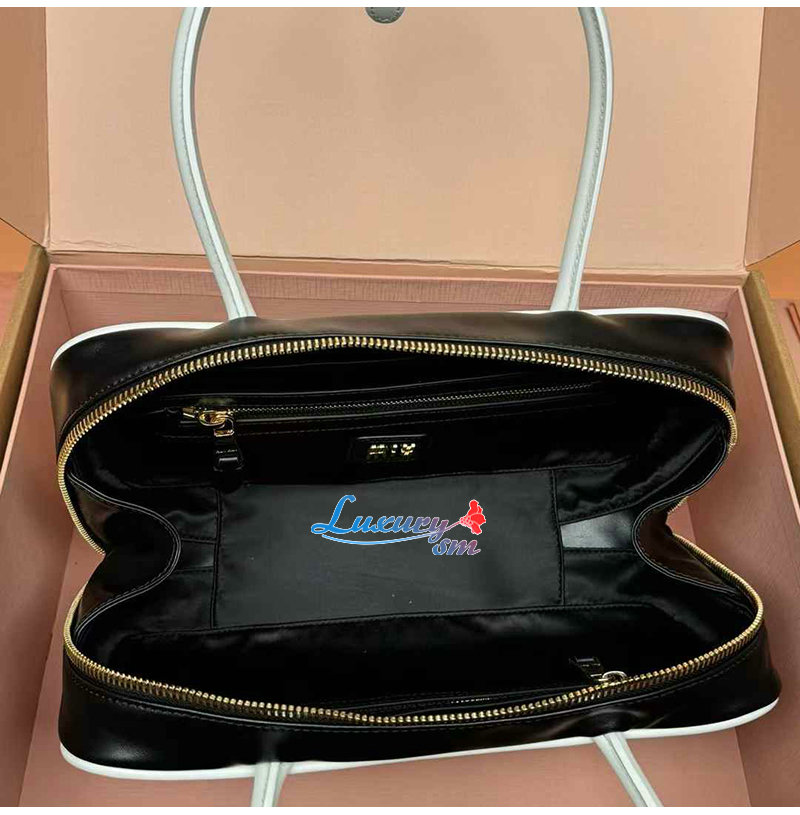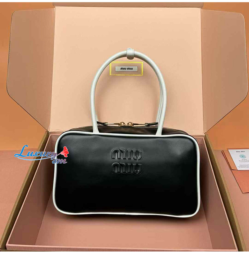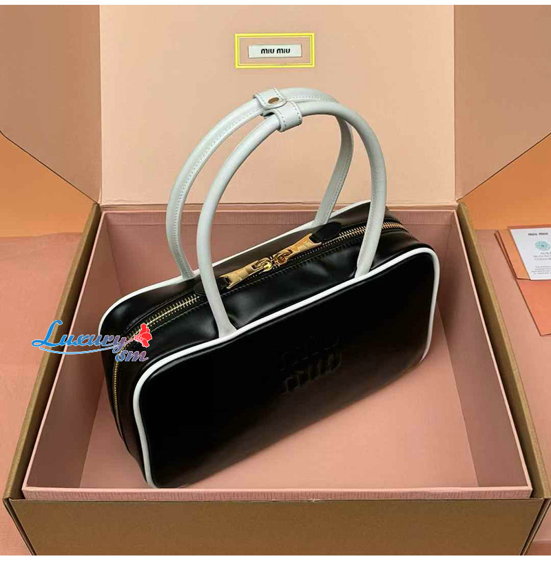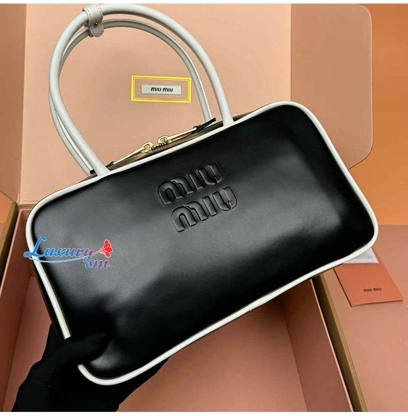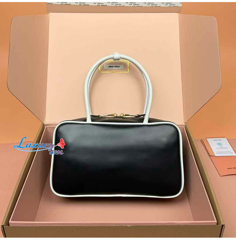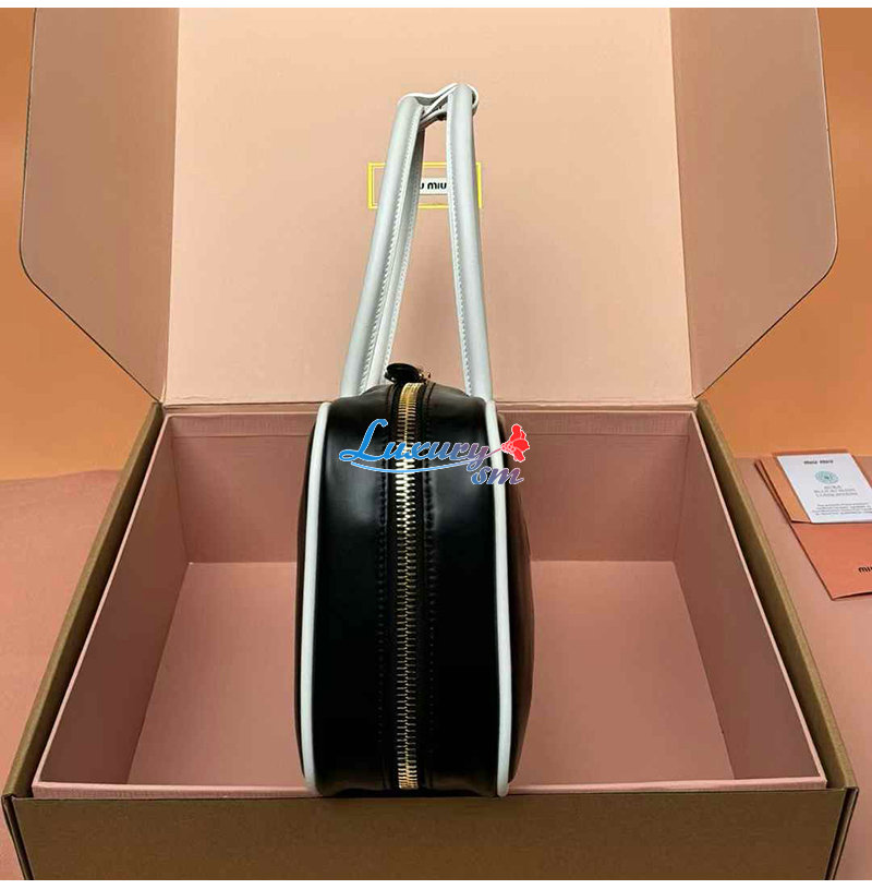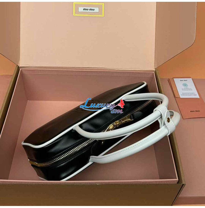 [스페셜오더]MIUMIU-5BB172 미우미우 블랙/화이트 송아지 가죽 보 백