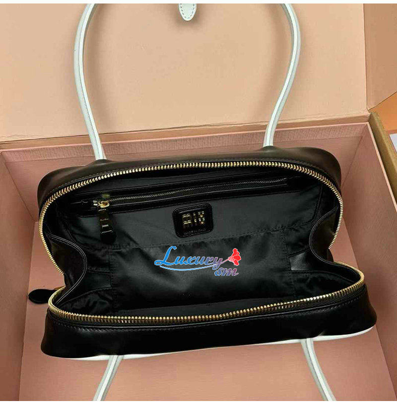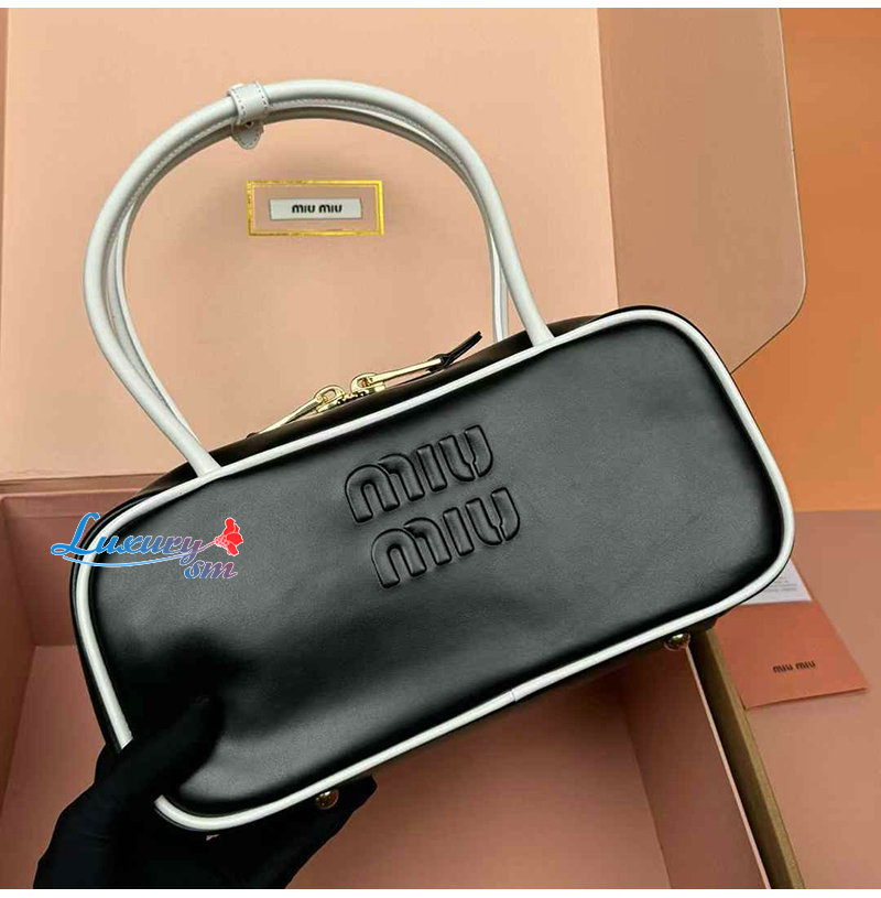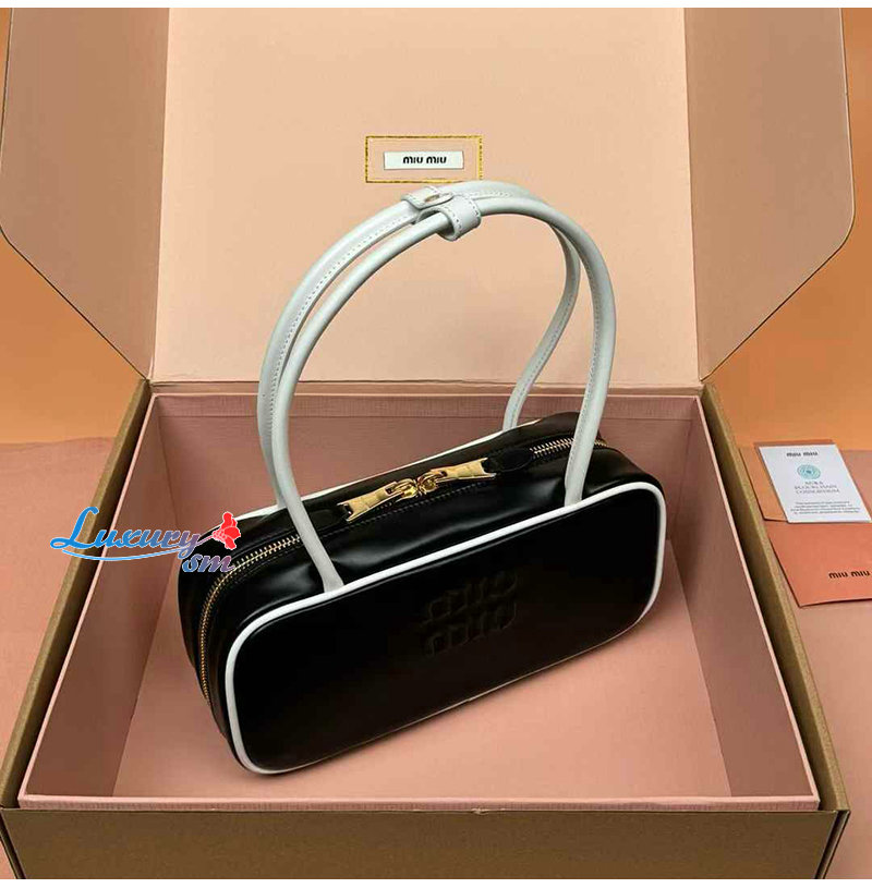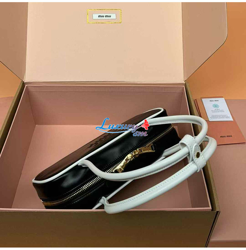 [스페셜오더]MIUMIU-5BB173 미우미우 블랙/화이트 송아지 가죽 보 백