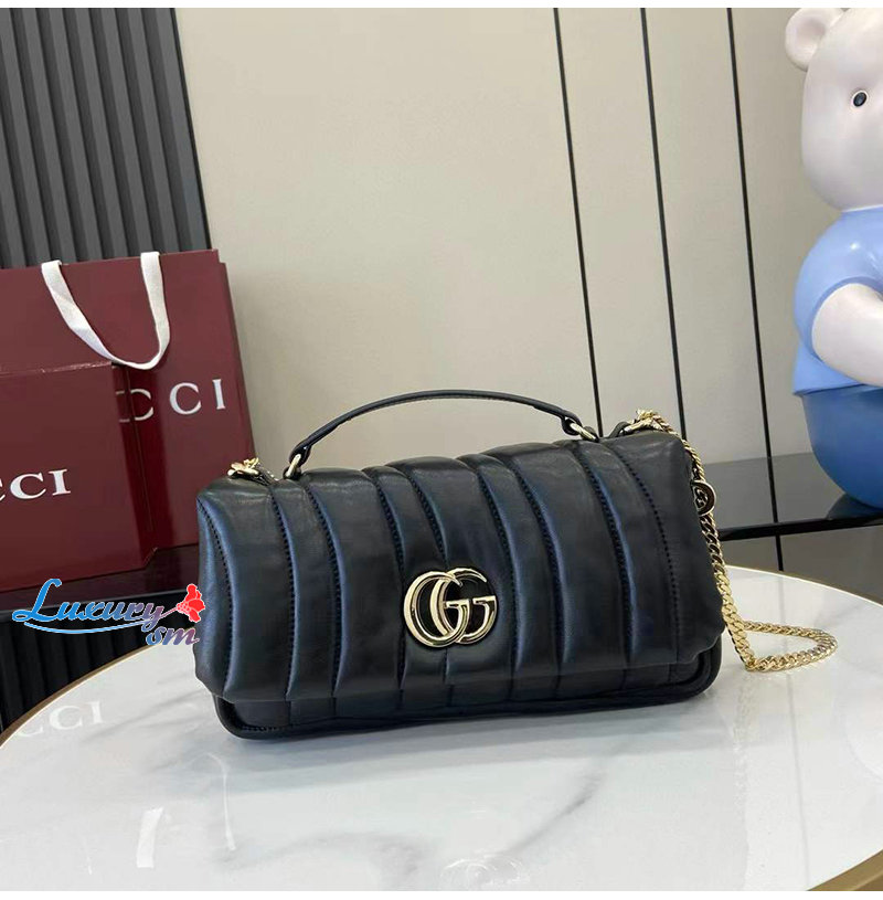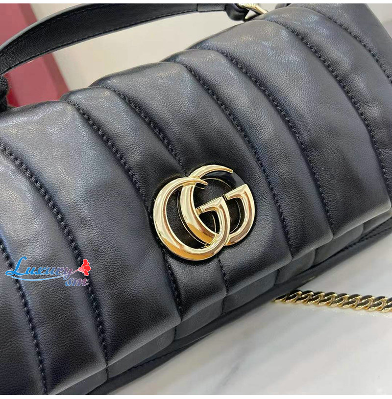 [스페셜오더]GUCCI-806016 1000 구찌 블랙 패딩 퀼티드 레더 GG 밀라노 스몰 탑 핸들백