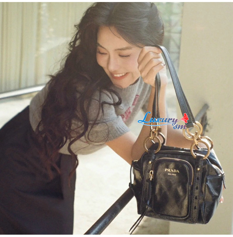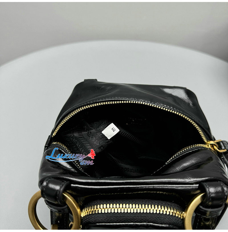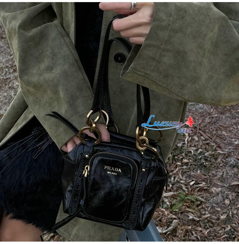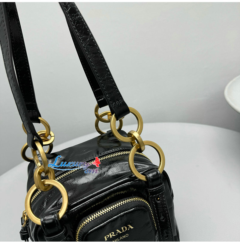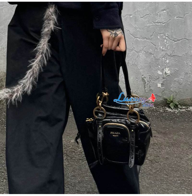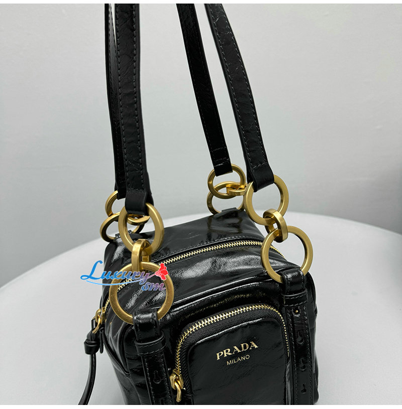 PRADA-1BB137 프라다 블랙 댕글 가죽 탑 핸들