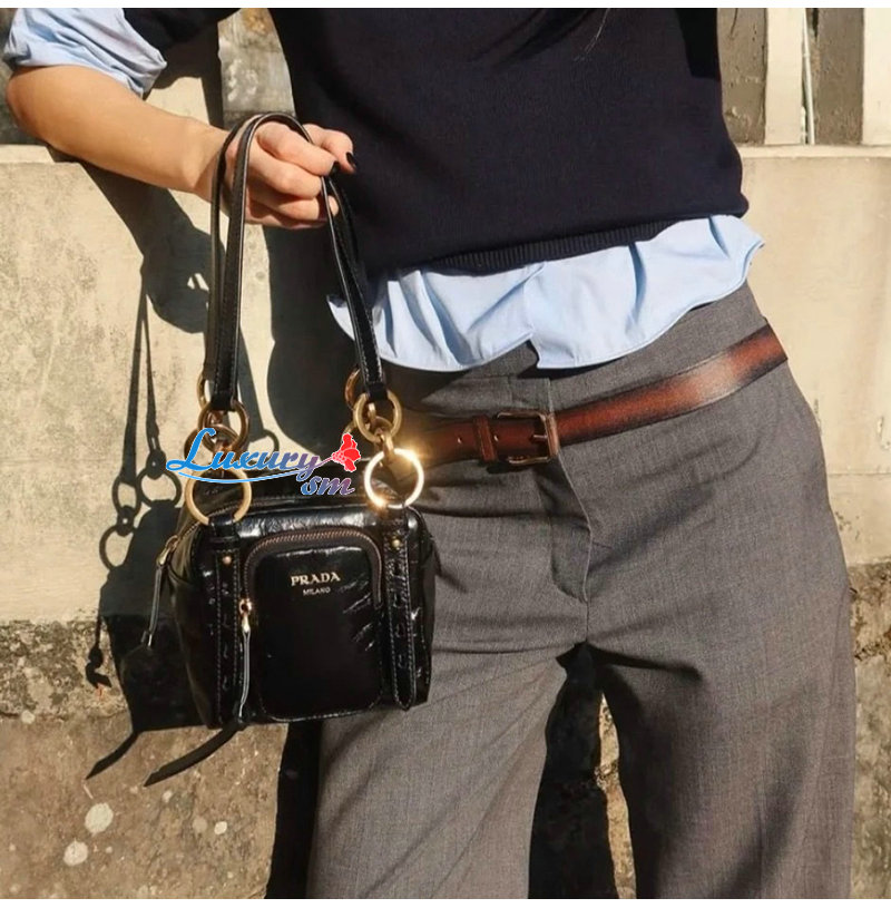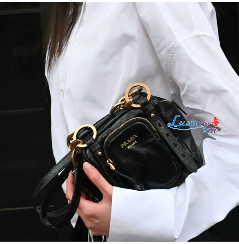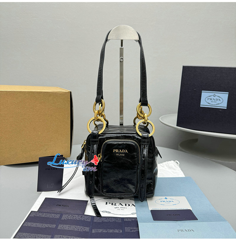 [스페셜오더]PRADA-1BB137 프라다 블랙 댕글 가죽 탑 핸들 미니백