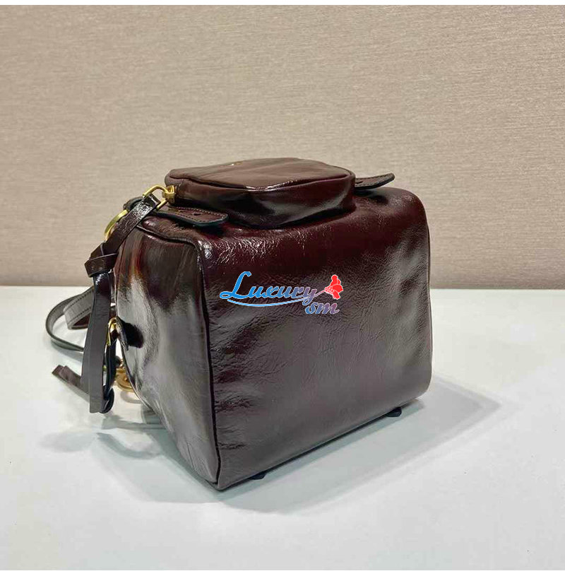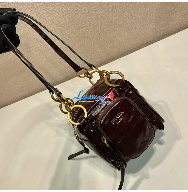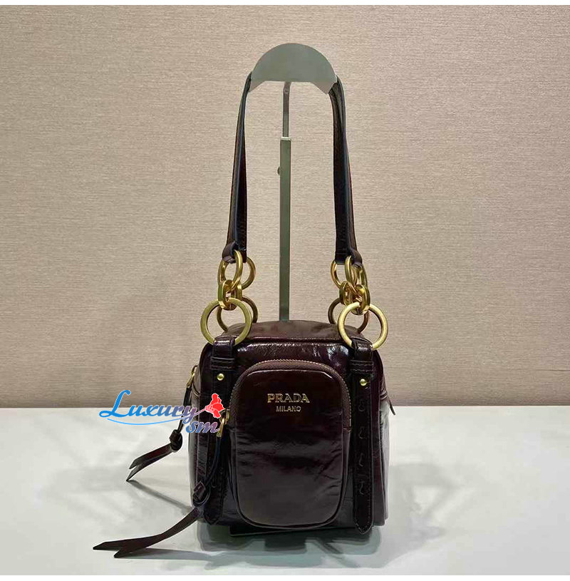 PRADA-1BB137 프라다 다크 브라운 댕글 가죽 탑