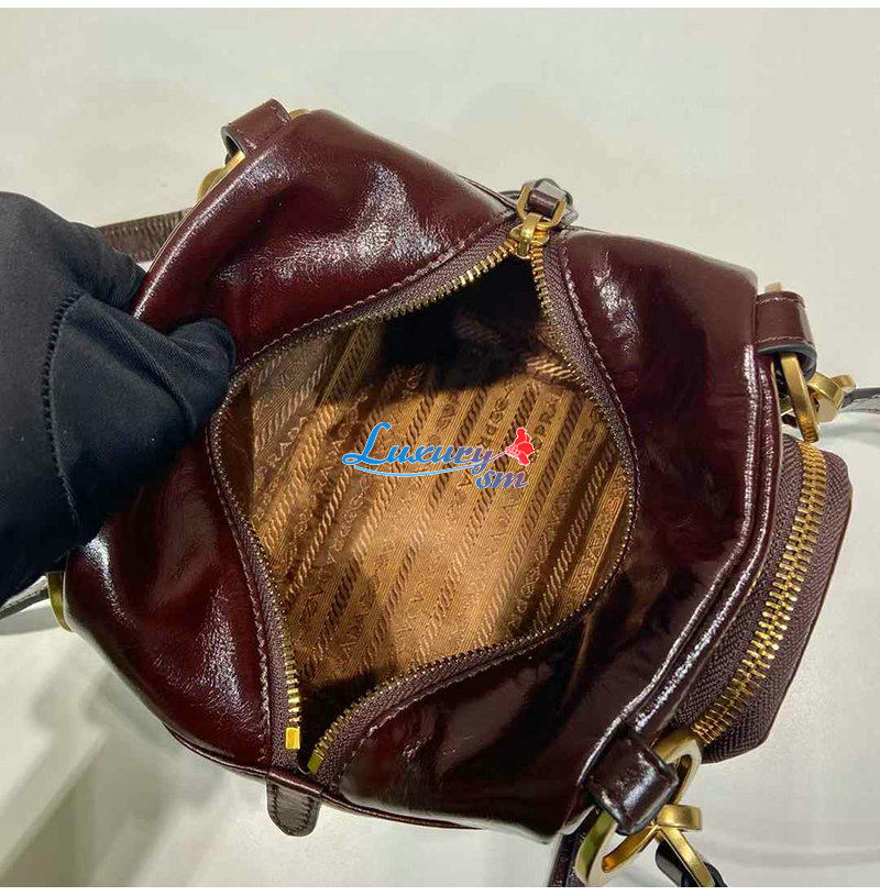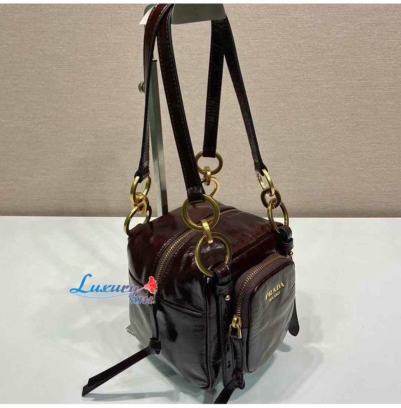 [스페셜오더]PRADA-1BB137 프라다 다크 브라운 댕글 가죽 탑 핸들 미니백