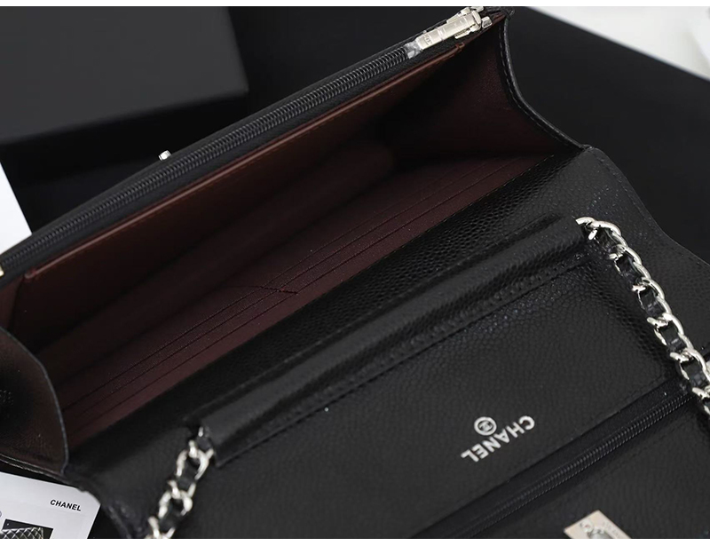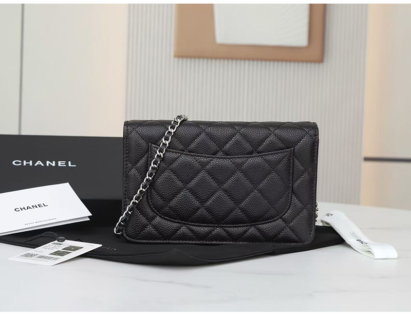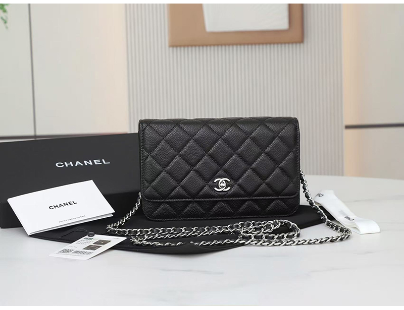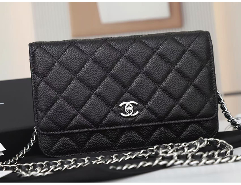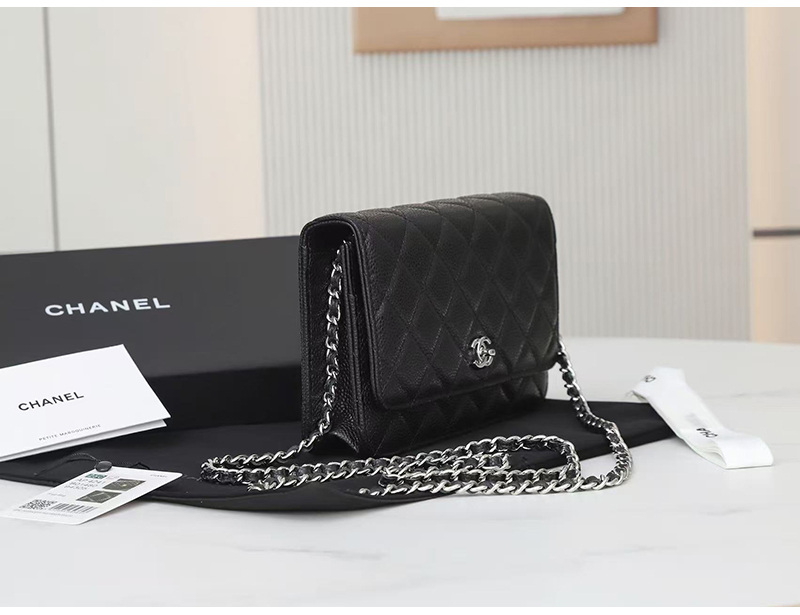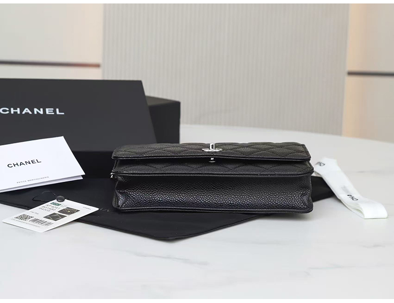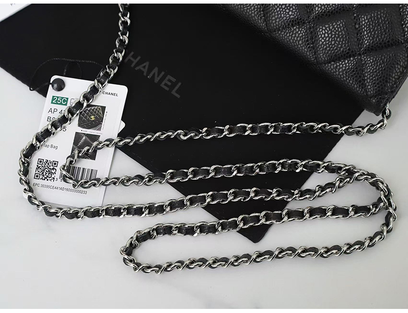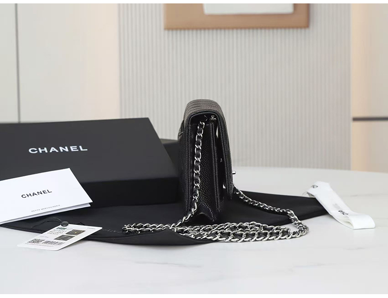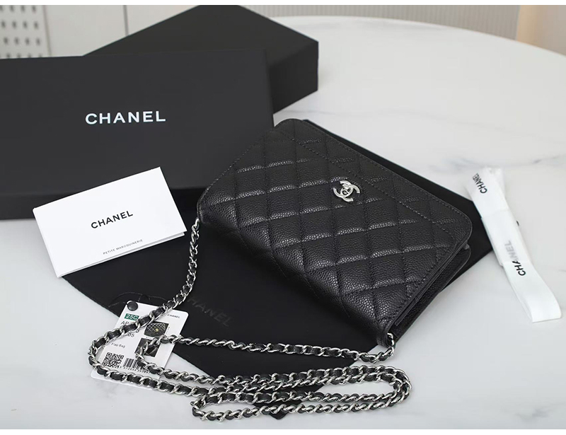 [스페셜오더]CHANEL-AP0250 2025년 신상 샤넬 블랙 은장 캐비어 턴락 월렛 온 체인 WOC