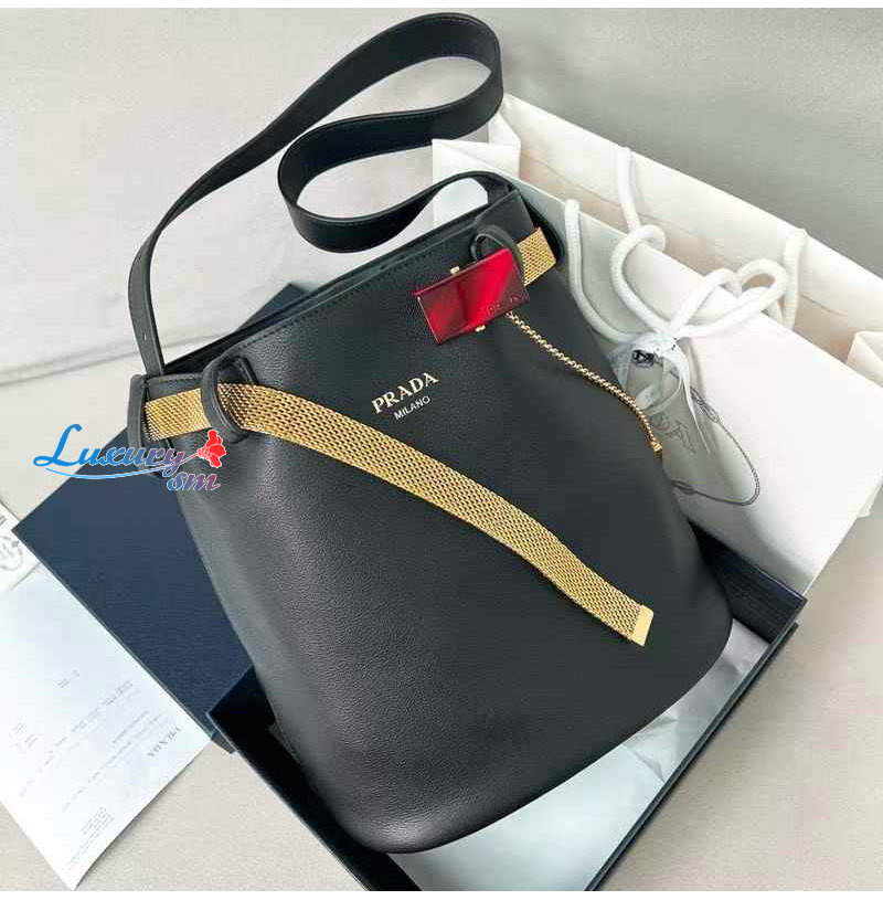 [스페셜오더]PRADA-1BE085 프라다 블랙 주얼리 벨트 버클 버킷 백
