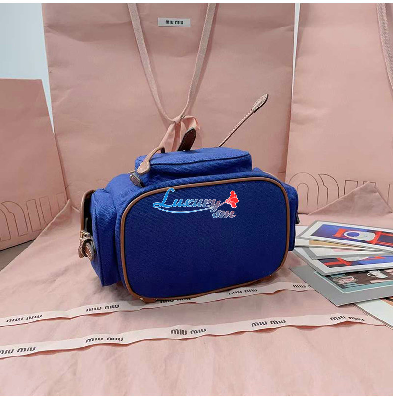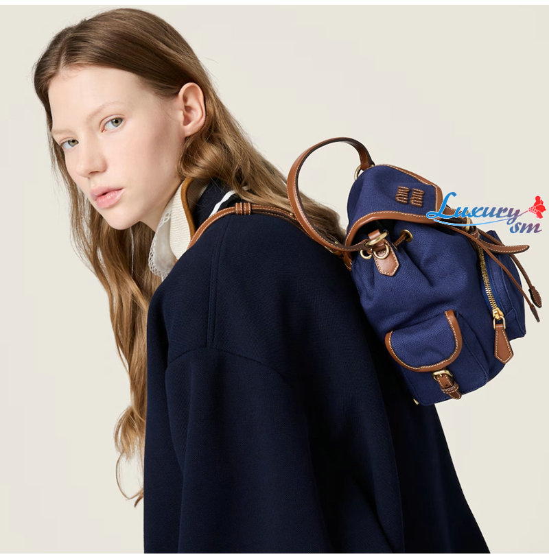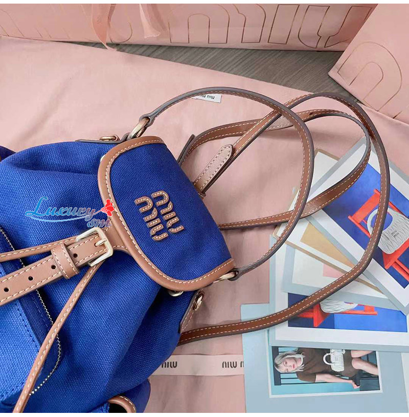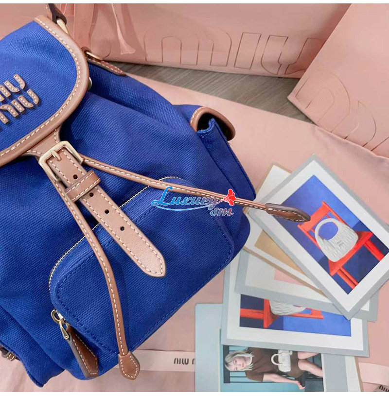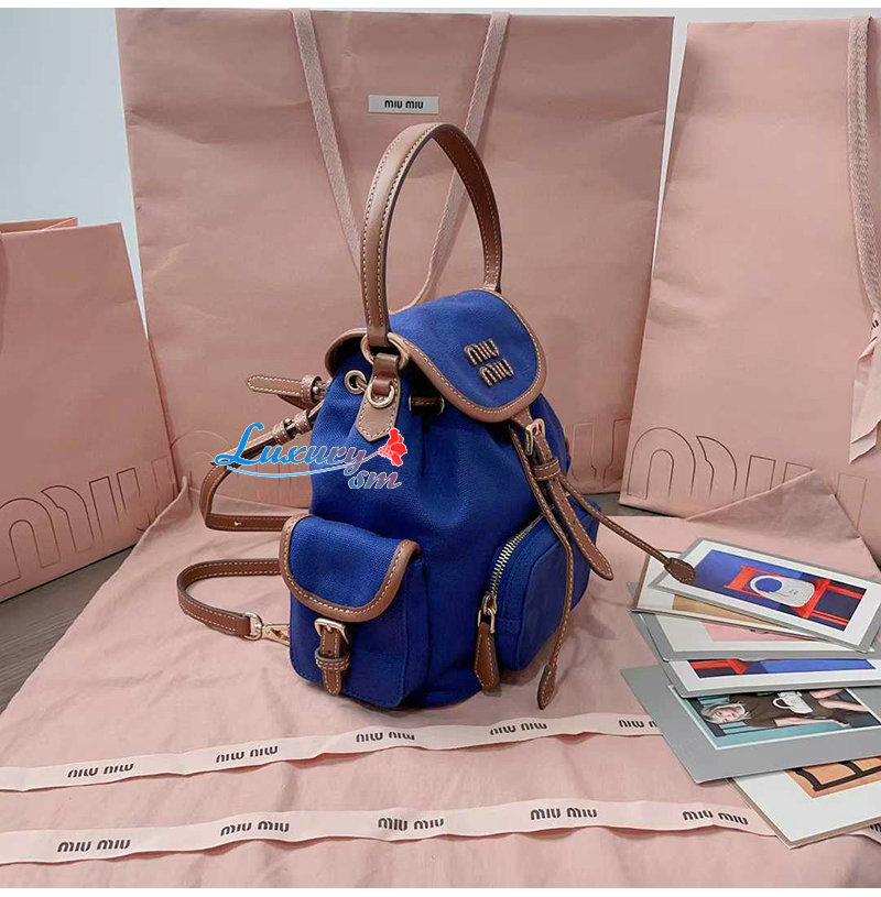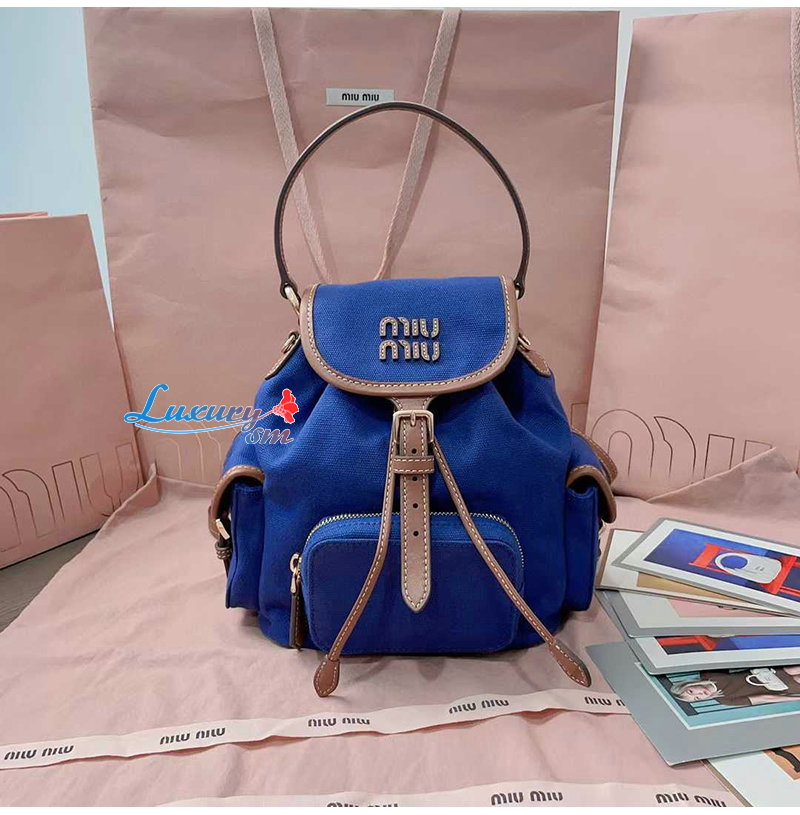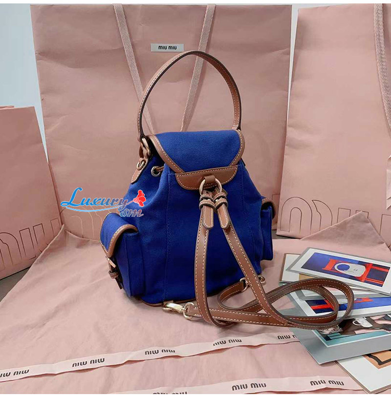 [스페셜오더]MIUMIU-5BZ043 미우미우 블루 캔버스 가죽 백팩 스몰
