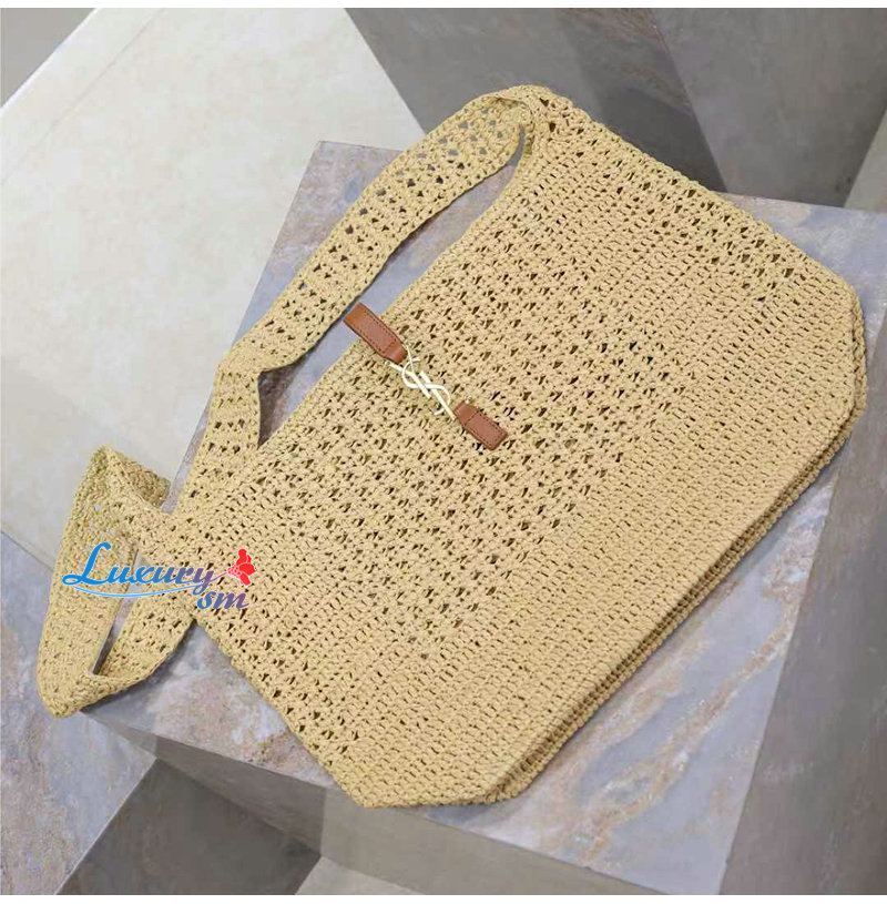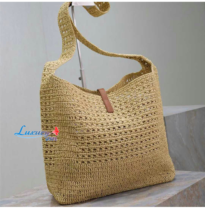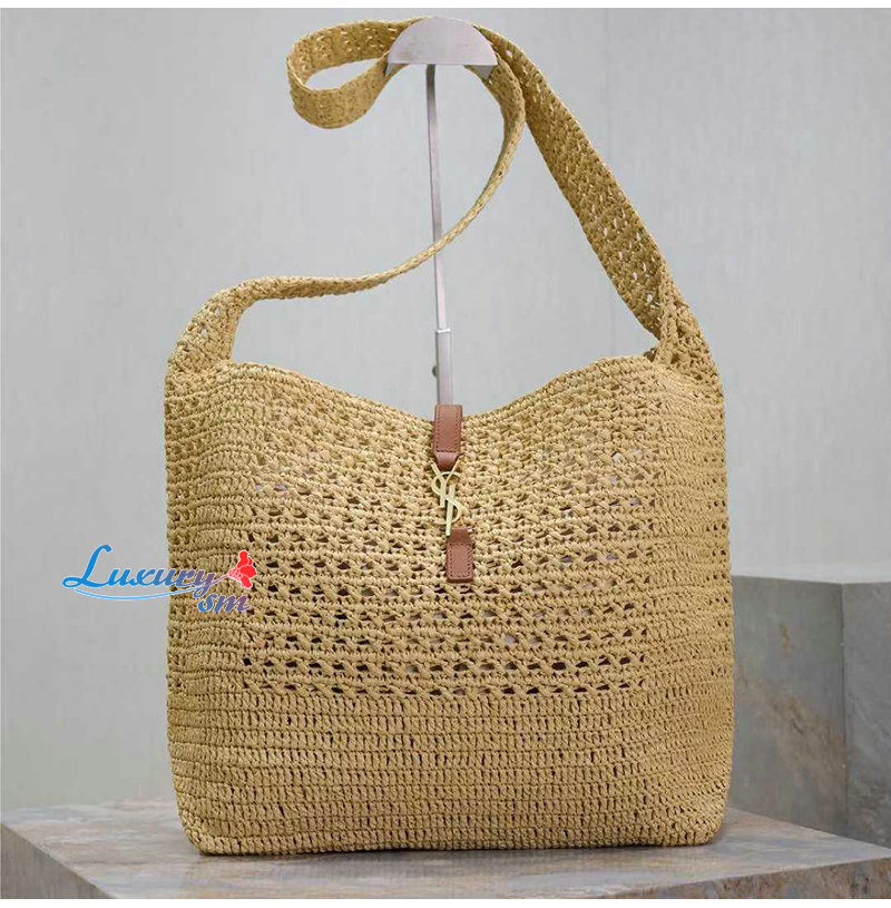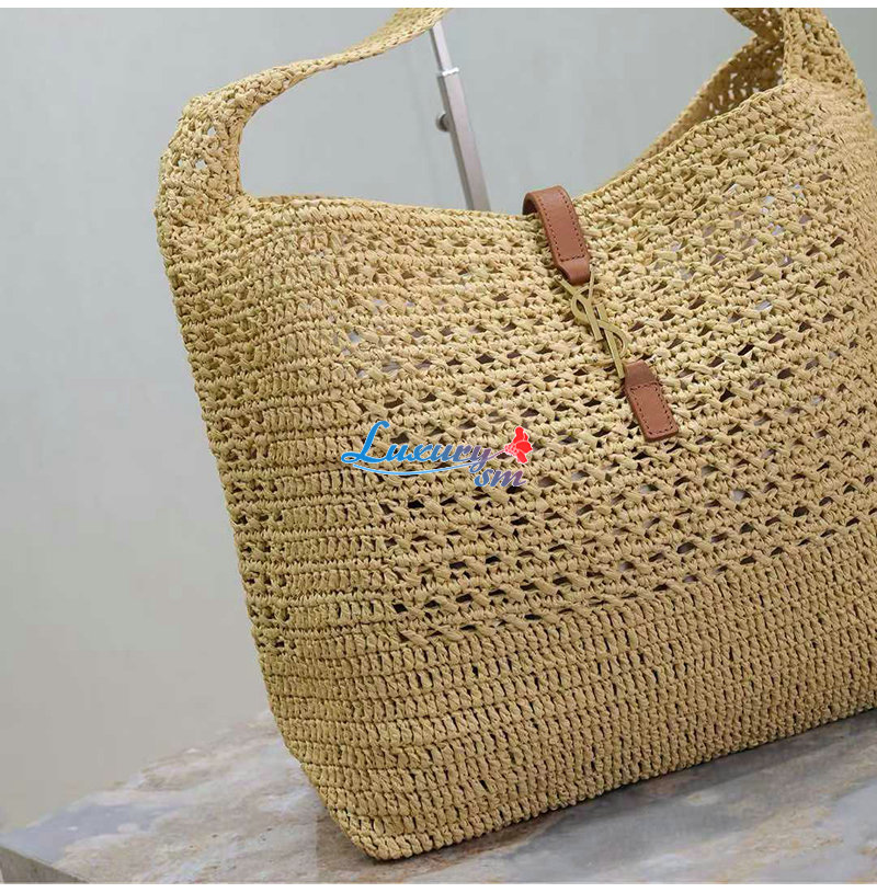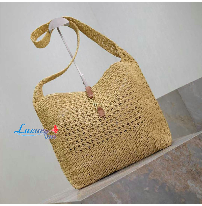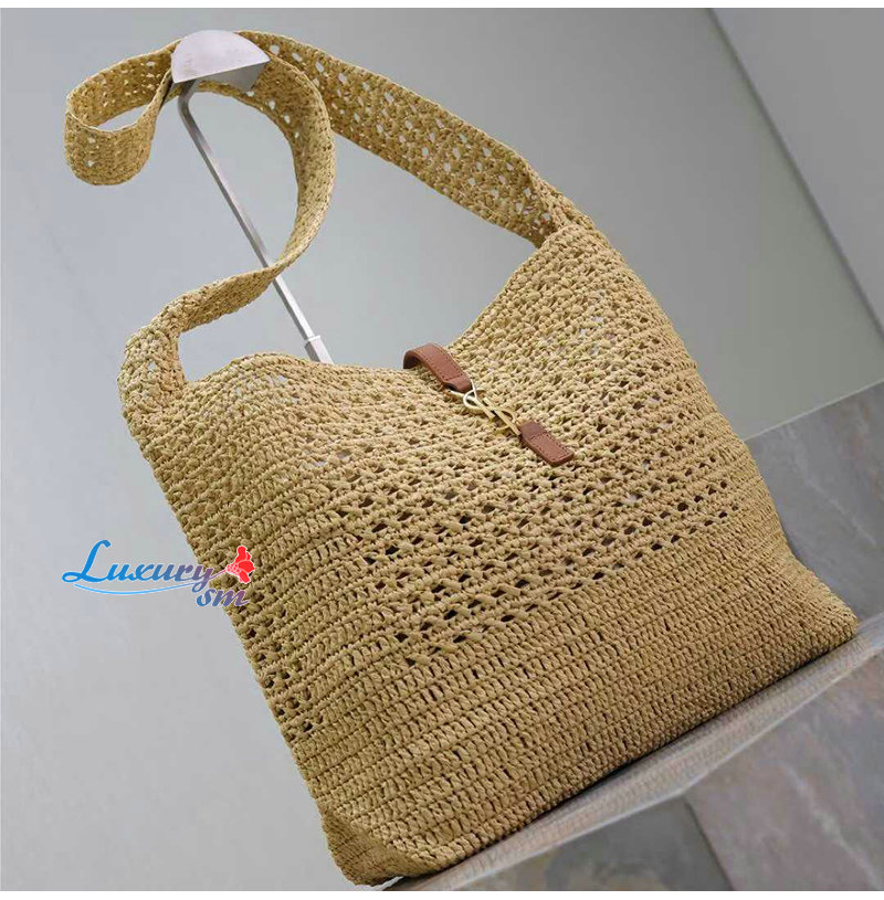 [스페셜오더]SAINT LAURENT-690941 생 로랑 내추럴 크로쉐 스무스 가죽 라피아 호보백