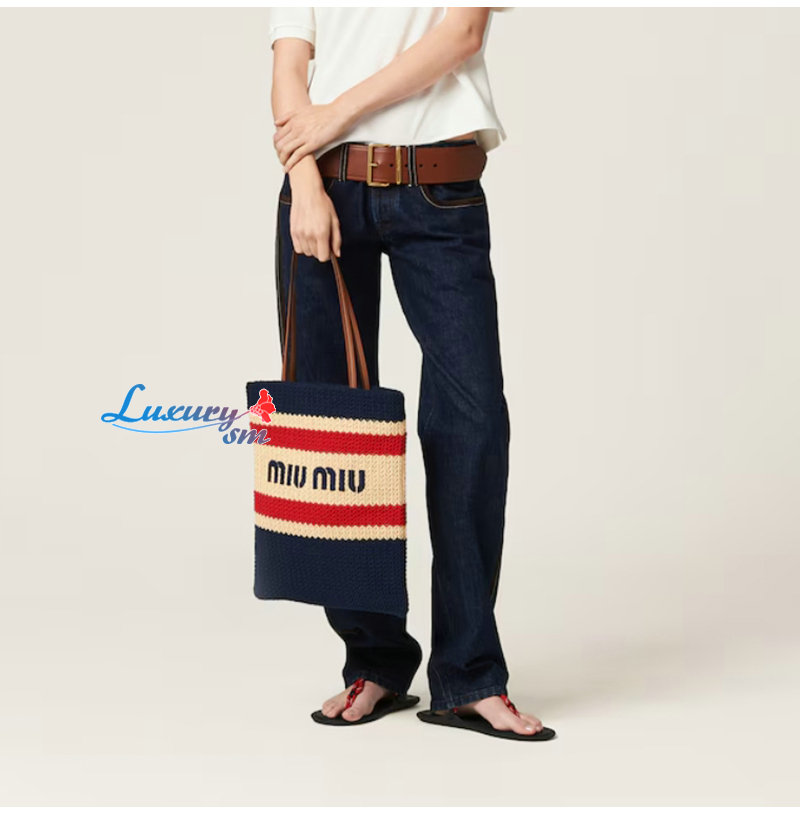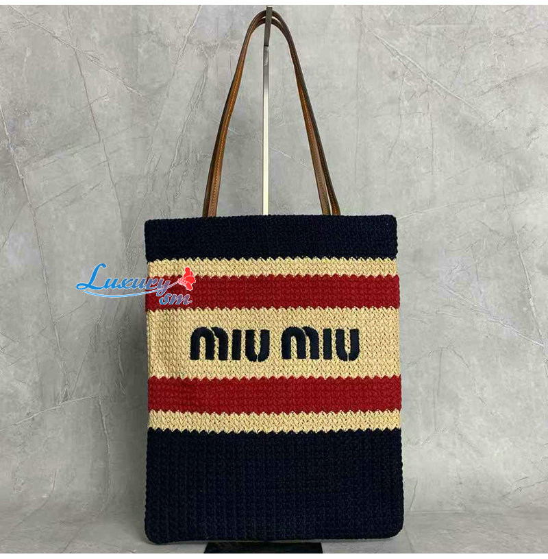 [스페셜오더]MIUMIU-5BG248 미우미우 네이비 라피아 효과 우븐 토트 백