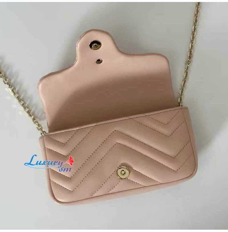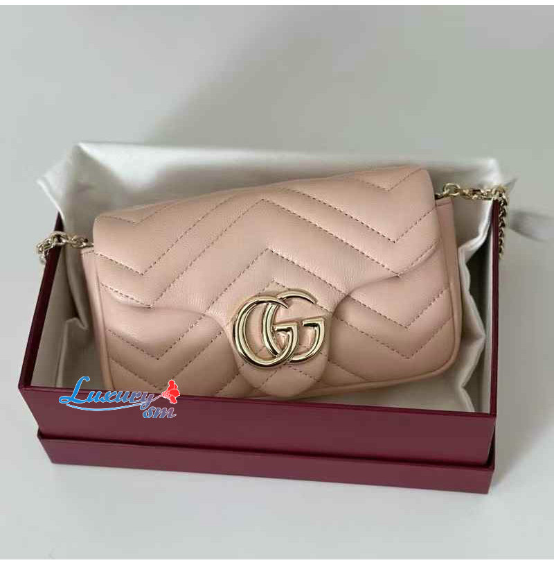 [스페셜오더]GUCCI-841290 6823 구찌 페일 핑크 가죽 GG 마몽 미니 숄더백