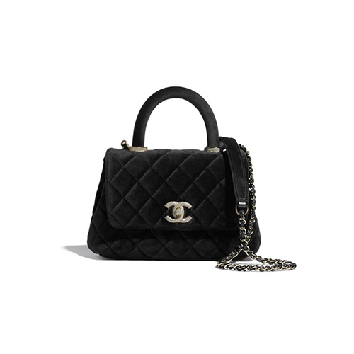 [스페셜오더]CHANEL-AS2215 샤넬 블랙 벨벳 스트라스 실버메탈 핸들 장식 미니 플랩 백