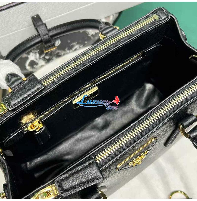 [스페셜오더]PRADA-1BA896 프라다 블랙 블러시드 가죽 갤러리아 탑 핸들백