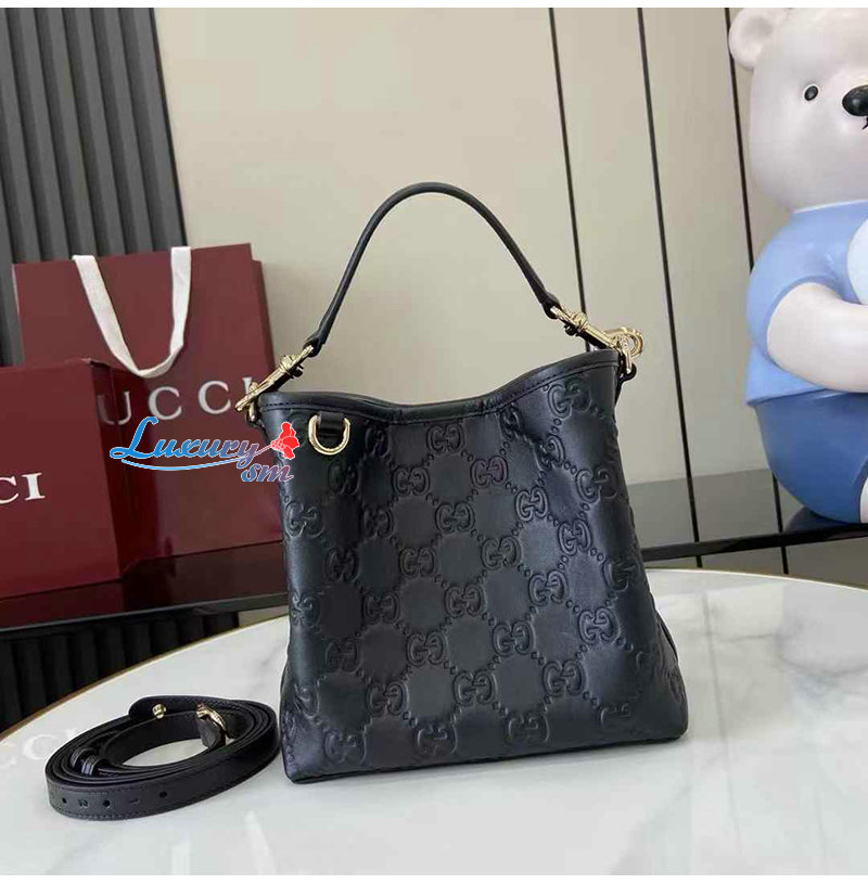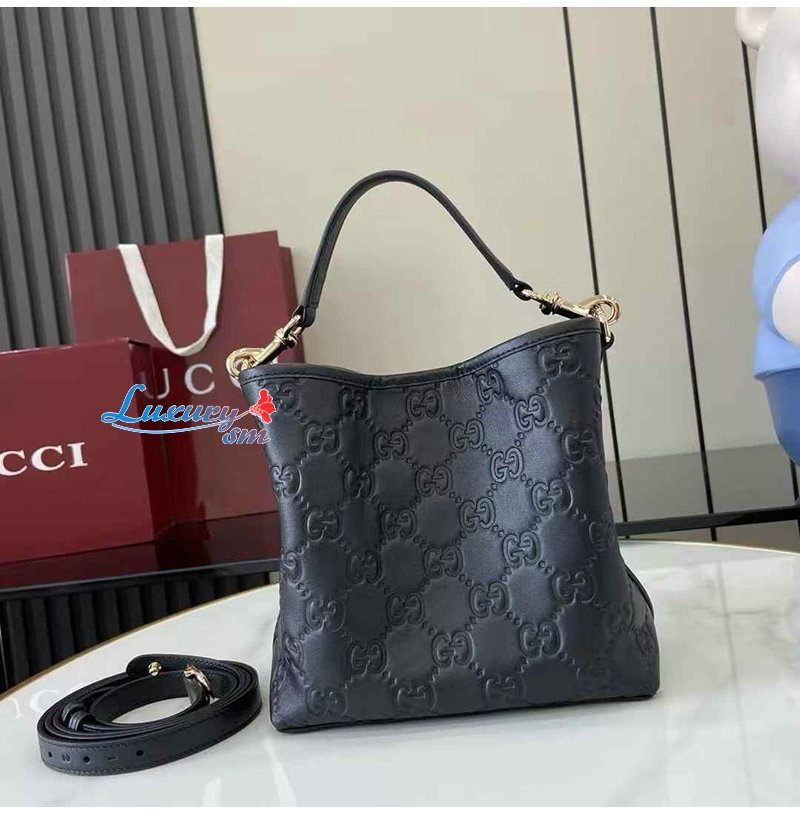 [스페셜오더]GUCCI-815118 1000 구찌 블랙 GG 엠블럼 스몰 버킷백