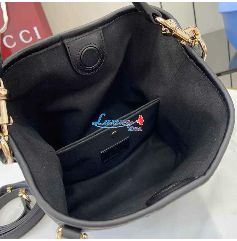 [스페셜오더]GUCCI-815118 1000구찌 블랙 가죽 GG 엠블럼 미니 버킷백
