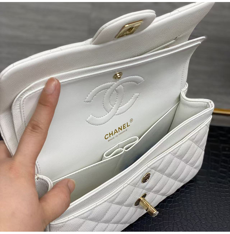 CHANEL-08151 샤넬 화이트 캐비어 가죽 2.55