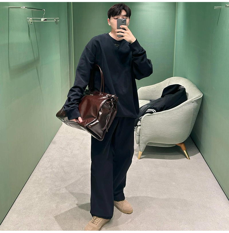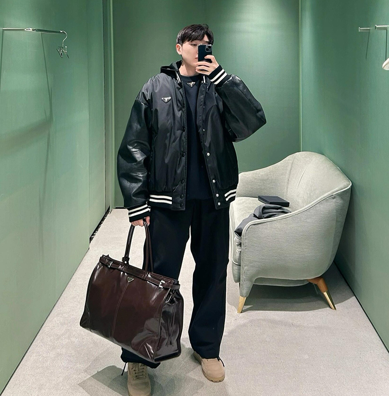 *로고 프린트 리나일론 및 나파 가죽 안감