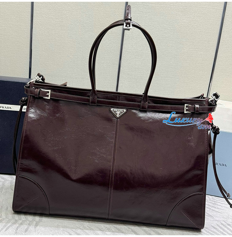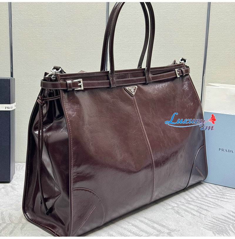 PRADA-2VG128 프라다 다크브라운 송아지 가죽 토트백