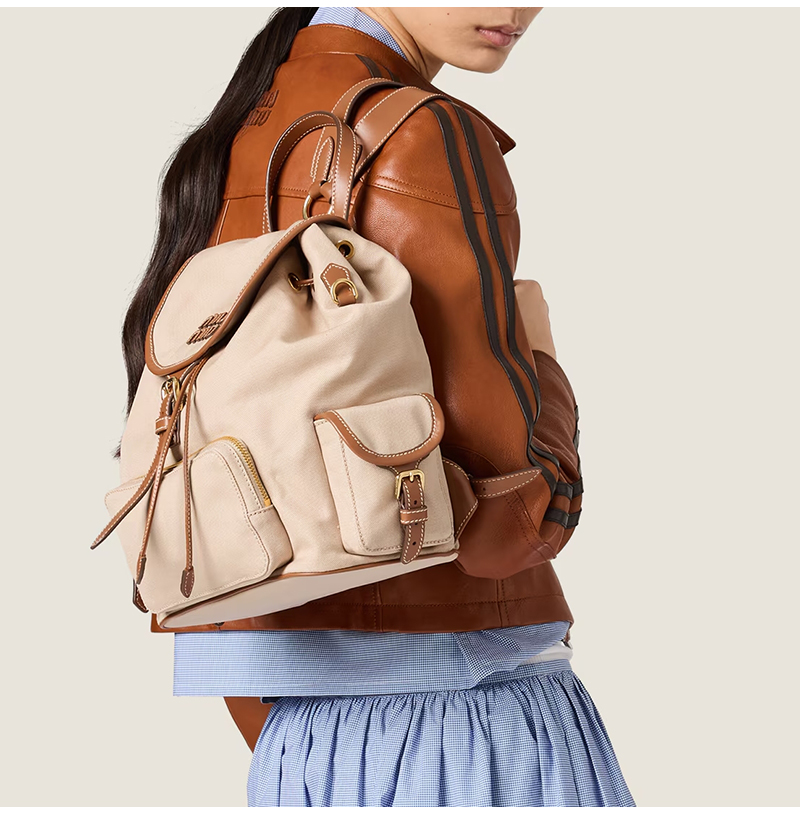 [스페셜오더]MIUMIU-5BZ042 미우미우 캔버스 및 가죽 백팩 베이지