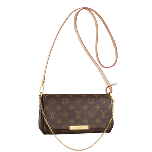 모노그램 캔버스 소재의 페이보릿 MM 클러치는 탈착 가능한 레더 스트랩과 골드 체인이 있어 숄더나 손에 가지고 다닐수 있습니다. 안 쪽을 열면 아름다운 버건디 안감으로 장식되어 있습니다.