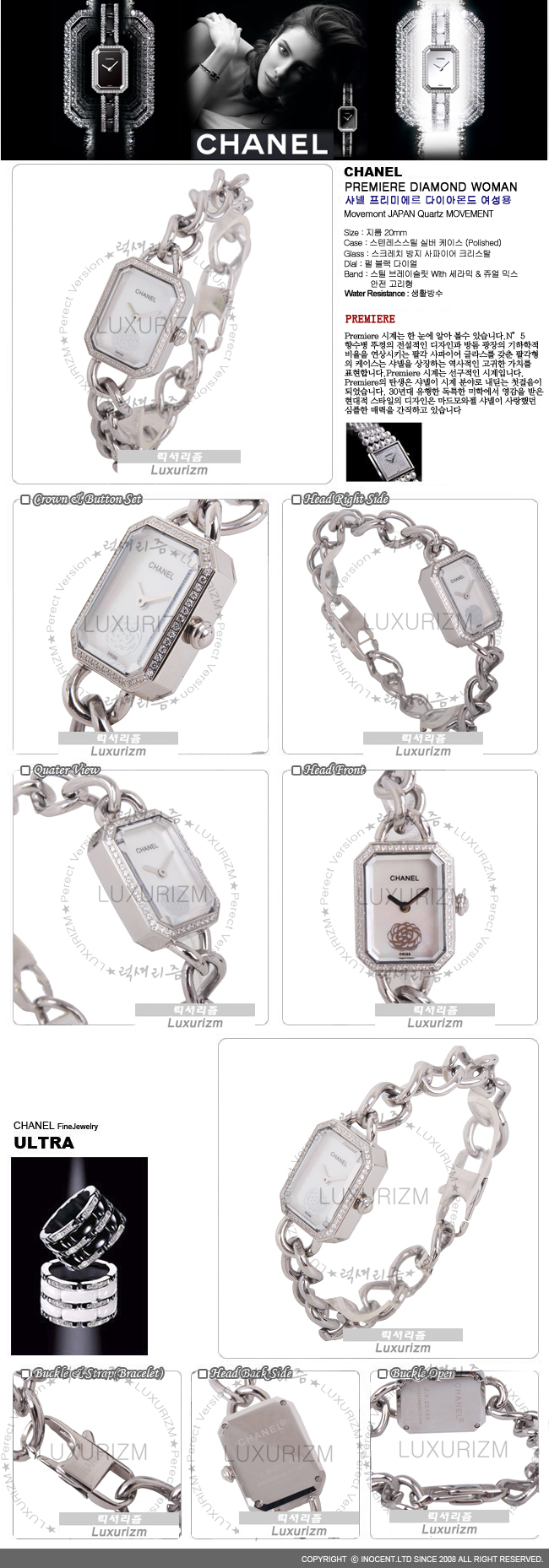 CHANEL-15543 여성용 프리미에르 다이아몬드 로즈골드 체인 흰판