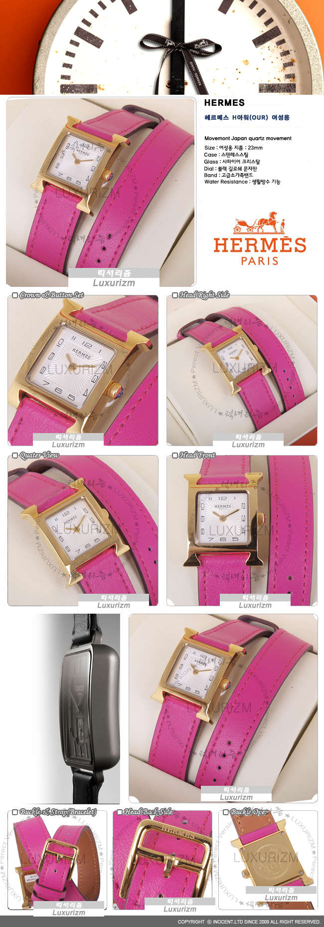 HERMES-03215 헤르메스 H아워 더블스트랩 핫핑크 금장