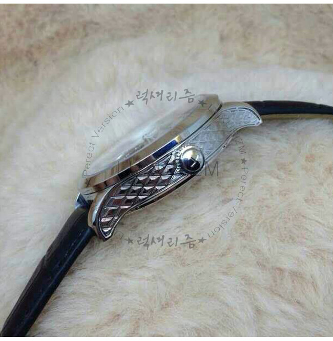 -가죽 스트랩 더블 폴딩/사파이어 크리스탈 케이스백/실버톤 자계 다이얼/스테인레스스틸 케이스.