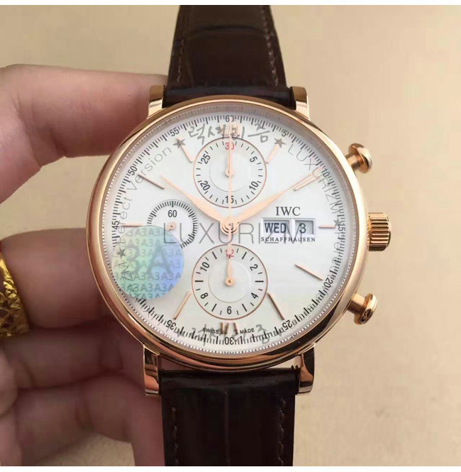[스페셜오더]IWC-IW391020 아이더블유씨 포르토피노 크로노그래프 레드 골드 실버다이얼 레플리카시계 42mm