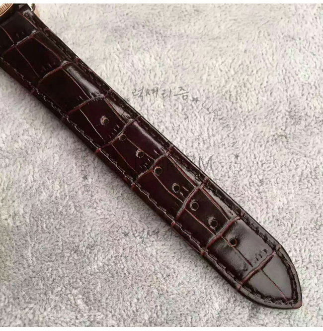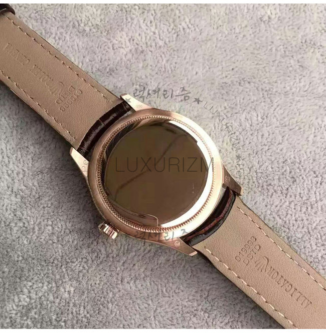 -에버로즈 골드 (IPG) 특수 도금 케이스/더블 베젤 돔드 및 플루티드/가죽 스트랩.