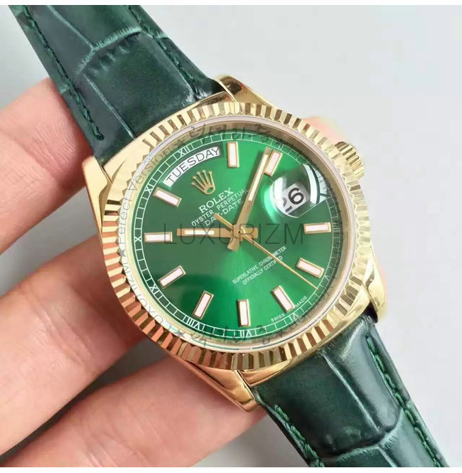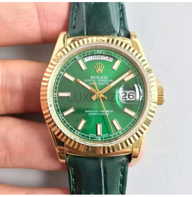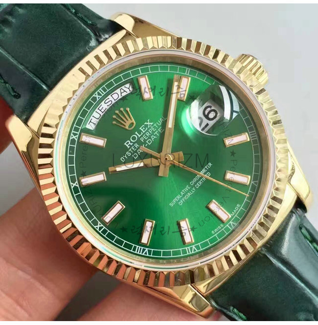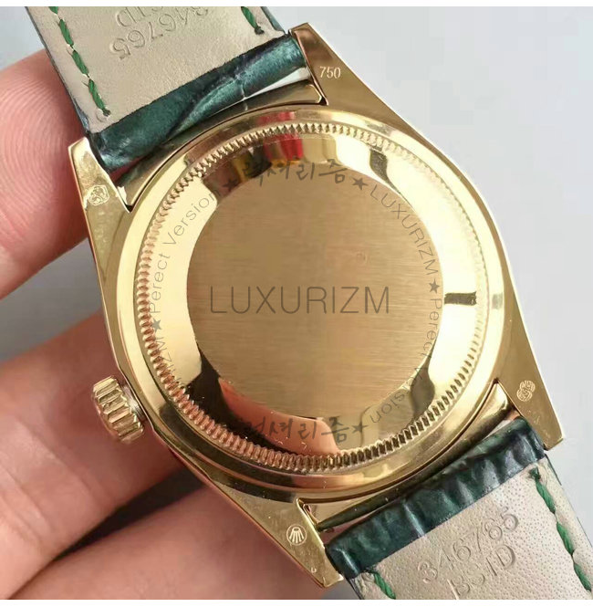 [스페셜오더]ROLEX-11813 롤렉스 오이스터 퍼페츄얼 데이-데이트 옐로우 골드 그린다이얼 시계 36mm