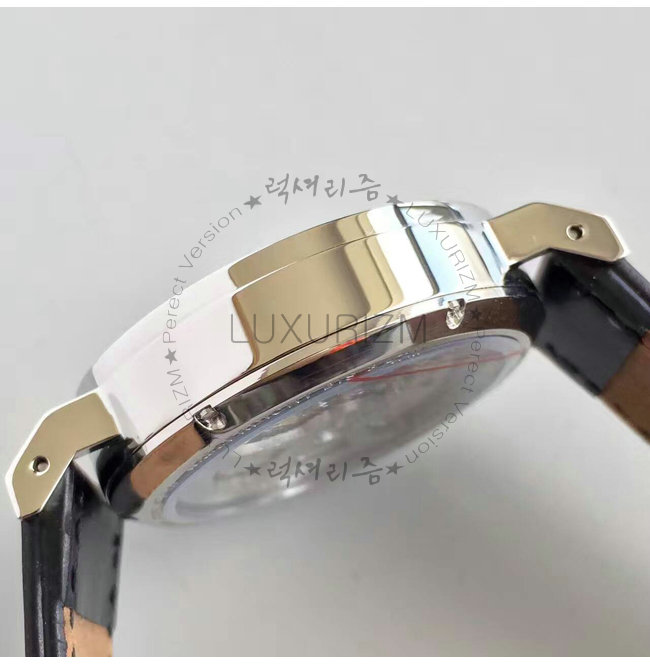 -파워리저브40시간/날짜 디스플레이/용두 노모스 각인/블랙 레더 벨트식 스트랩/생활방수.