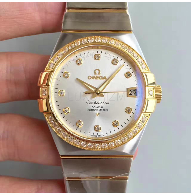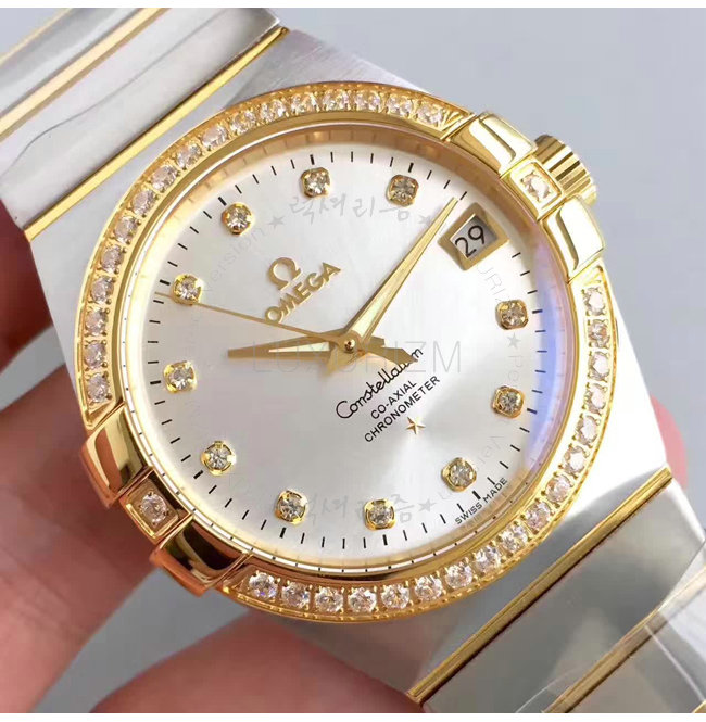 #오메가 컨스텔레이션 코-액시얼 옐로우 골드 스틸 다이아 인덱스/베젤 워치 38mm