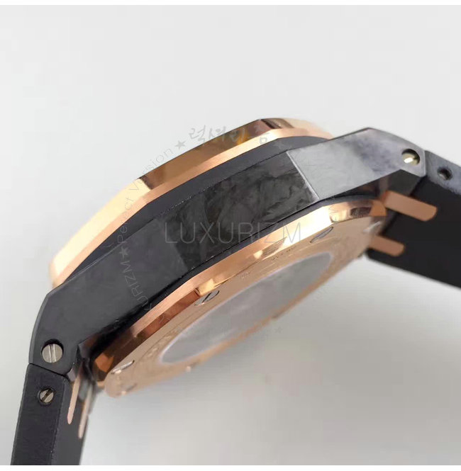 -핑크골드 특수 이온 전착도금(IPG)/카본 케이스/케이스백/러버 스트랩 핀버클.