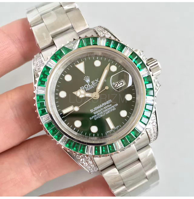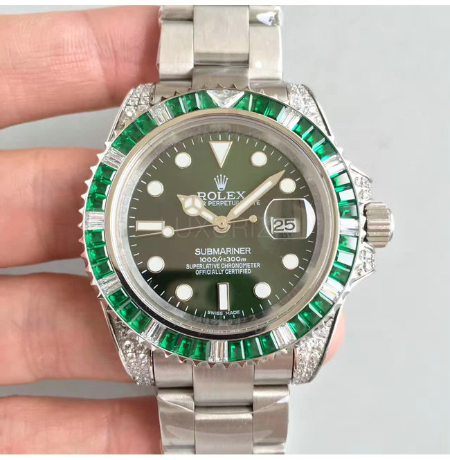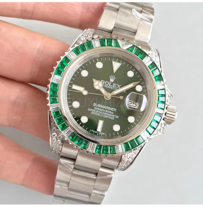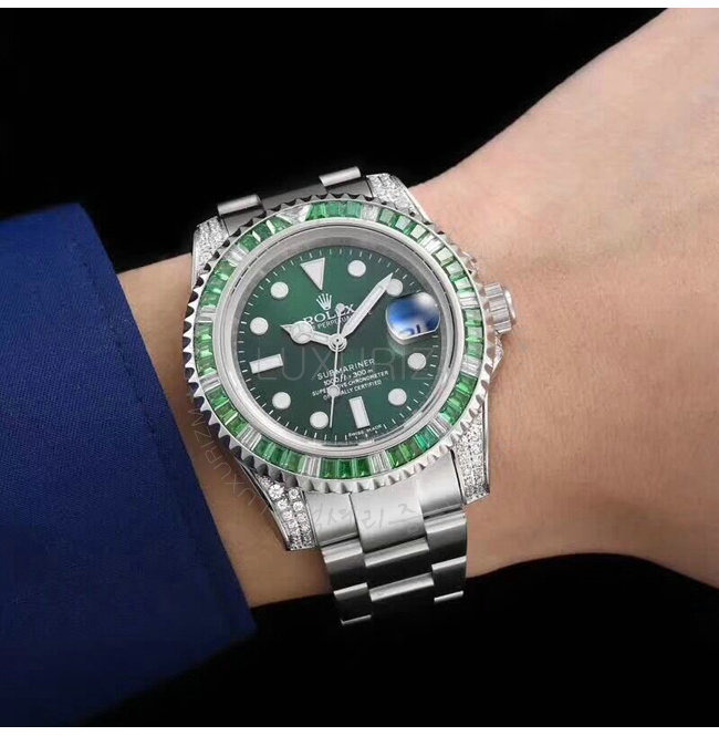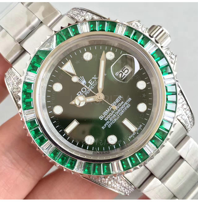 -스테인레스 스틸 케이스/와인딩 크라운/그린 사파이어 베젤 다이아 셋팅 그린 다이얼.