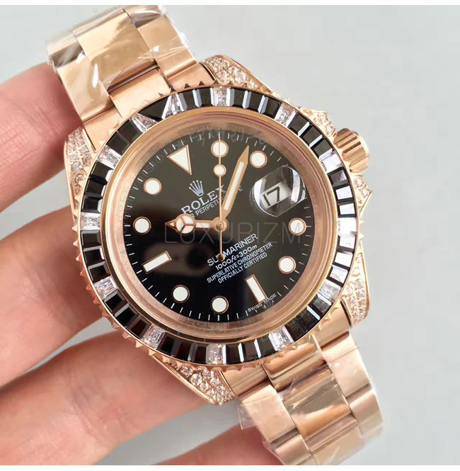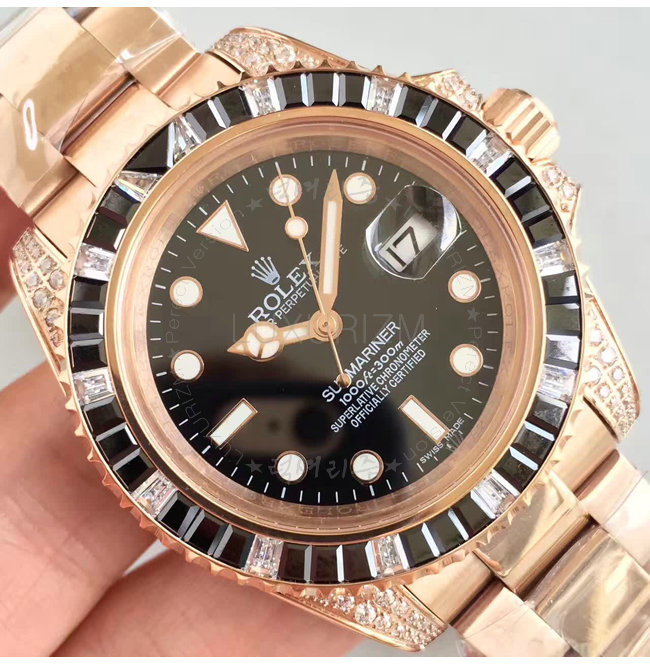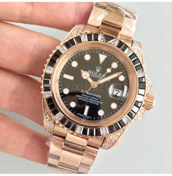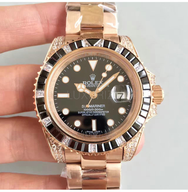 [스페셜오더]ROLEX-1888 롤렉스 오이스터 퍼페츄얼 서브 마리너 로즈 골드 블랙 사파이어 다이아 블랙 다이얼 40mm