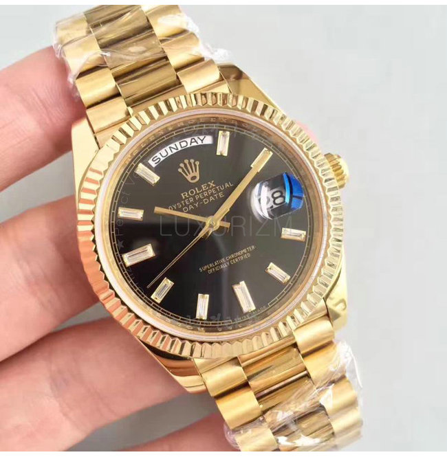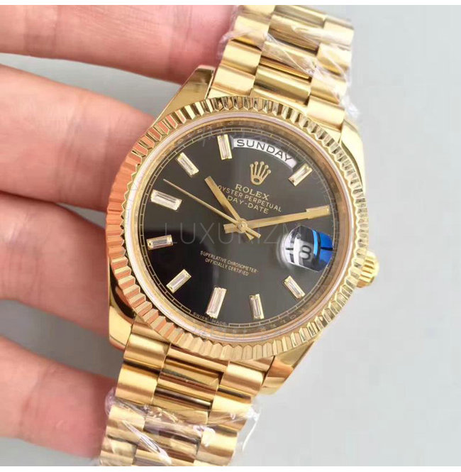 #ROLEX 오이스터 퍼페츄얼 Day-Date 데이-데이트 옐로우 골드 블랙 다이얼 40mm.