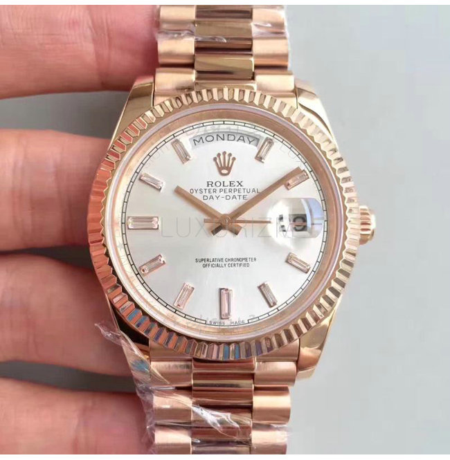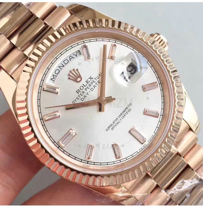 #ROLEX 오이스터 퍼페츄얼 Day-Date 데이-데이트 에버로즈 골드 선더스트 다이얼 40mm.