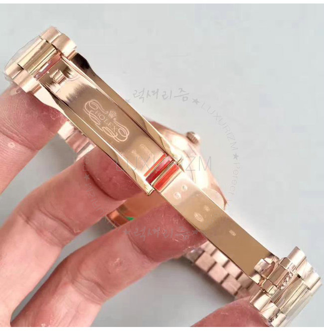 -에버로즈골드 IPG 특수이온 도금 케이스/다이얼 중앙 시 분 초침위치 날짜표시.
