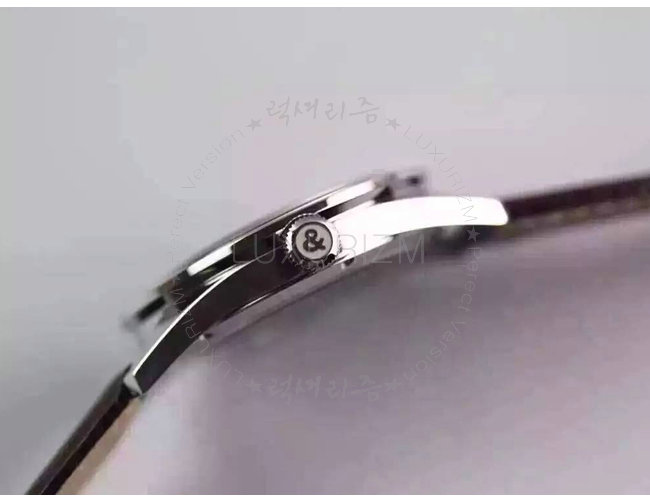 -기계식 자동 와인딩 방식 무브먼트/시침 분침 초침 날짜표시창/가죽 스트랩.
