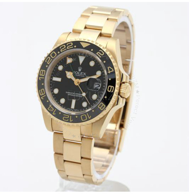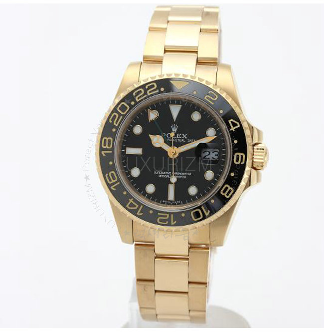 [스페셜오더]ROLEX-롤렉스 오이스터 퍼페츄얼 GMT-MASTER II 데이트 옐로우 골드 (18K 포금) 블랙다이얼 워치 40mm