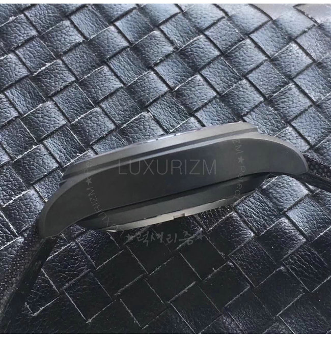 -세라믹 케이스/내부 연철 케이스/스쿠류 인 크라운/3 시 데이터 창/엠보싱 가죽스트랩.