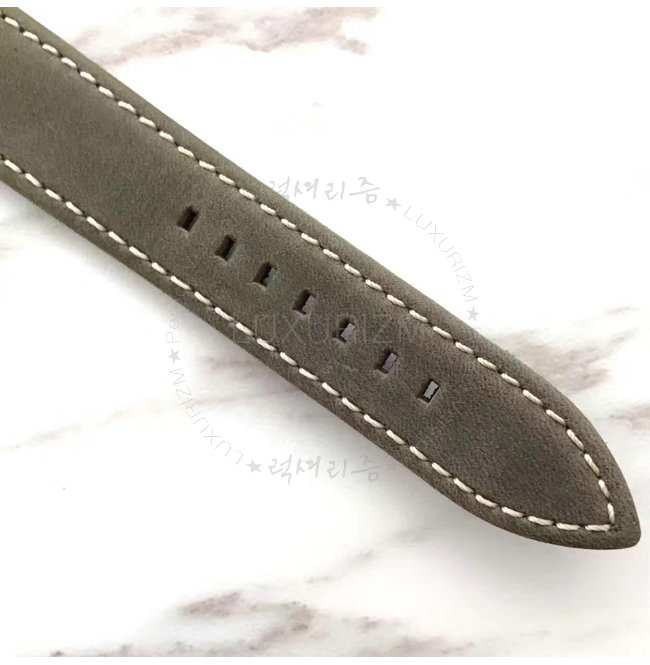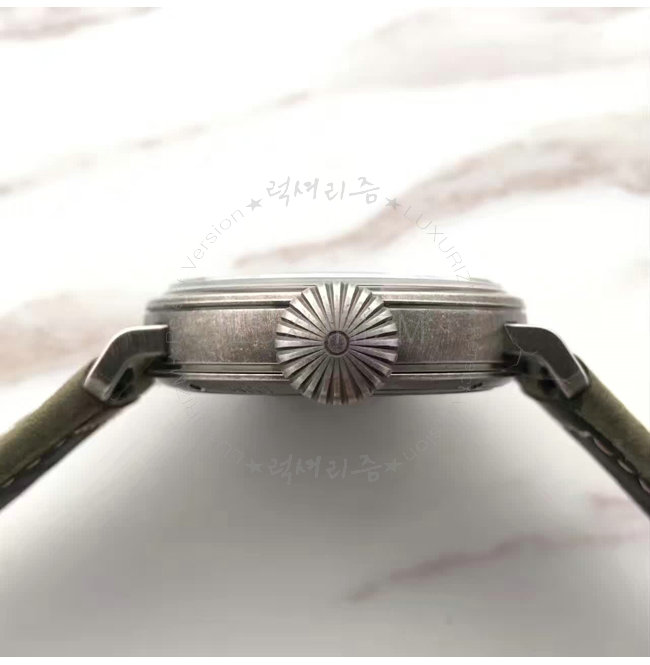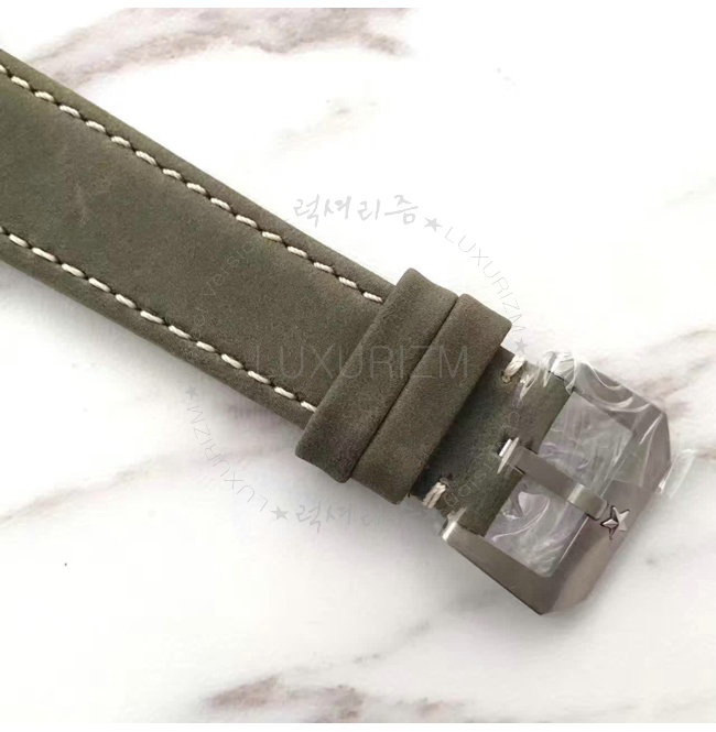-에이지드 스틸 케이스/사파이어 글래스/누벅 가죽 스트랩.핀 버클.