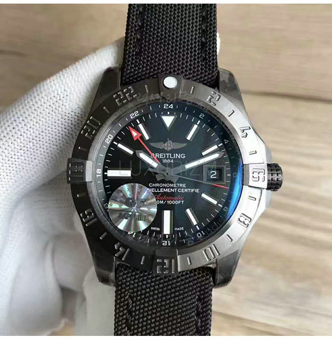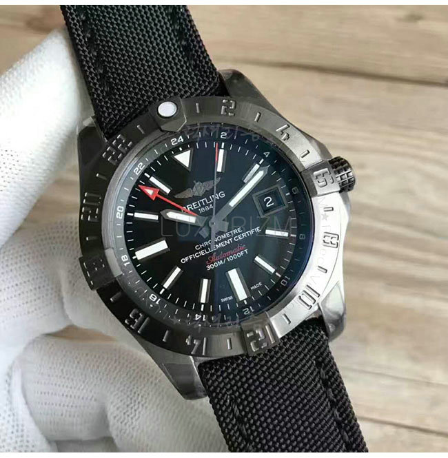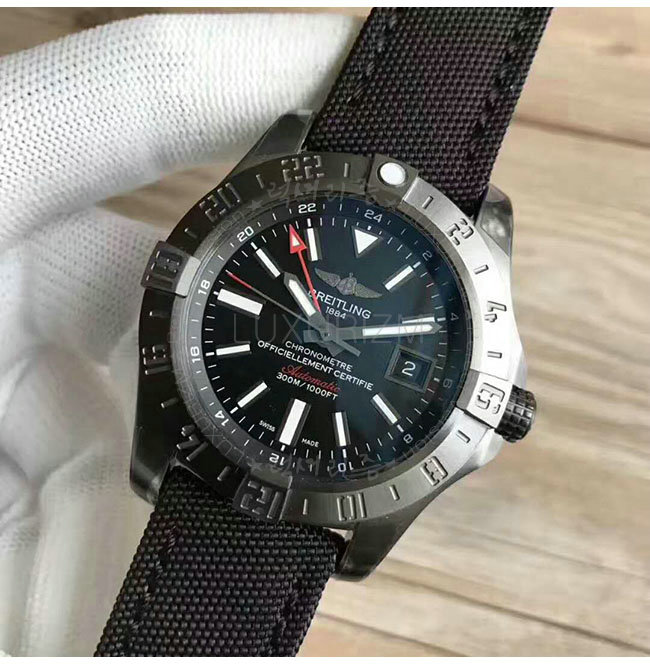 [스페셜오더]BREITLING-브라이틀링 어밴져 II GMT 블랙 스틸 블랙다이얼 워치 43mm
