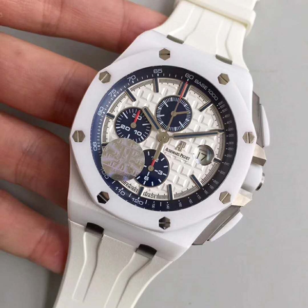 [스페셜오더]Audemars Piguet-오데마 피게 로얄 오크 오프쇼어 크로노그래프 세라믹베젤 화이트다이얼 워치 44mm