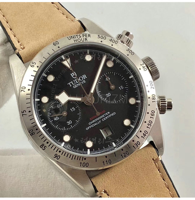 [스페셜오더]TUDOR-튜더 헤리티지 블랙 베이 크로노 스틸 레더스트랩 시계 41mm