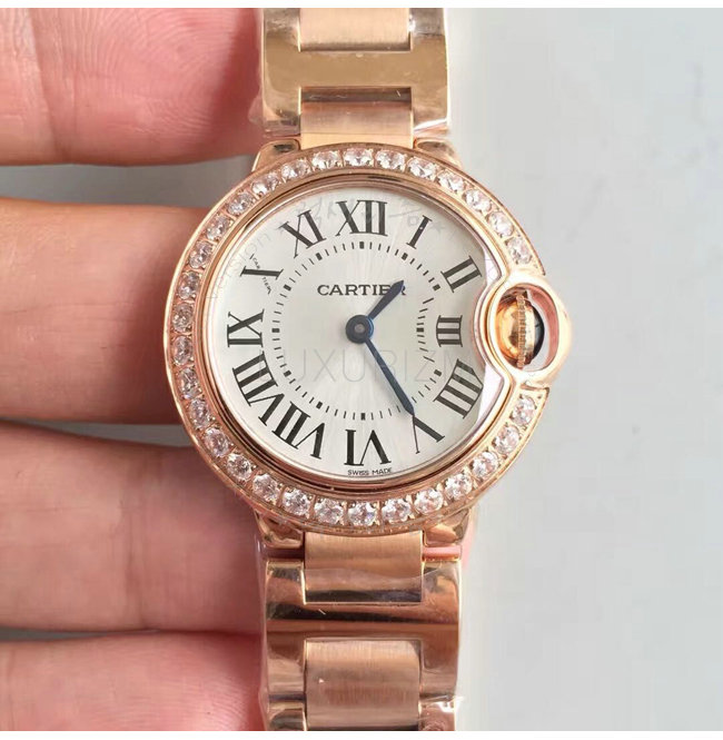 [스페셜오더]Cartier-WJBB0015 까르띠에 발롱 블루 드 쿼츠 다이아몬드 핑크 골드 브레이슬릿 레이디스 워치 28mm