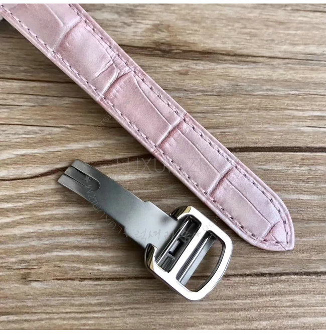 -사파이어 글래스 핑크 앨리게이터 가죽 스트랩 조절 가능한 스틸 더블 디플로이언트 버클.