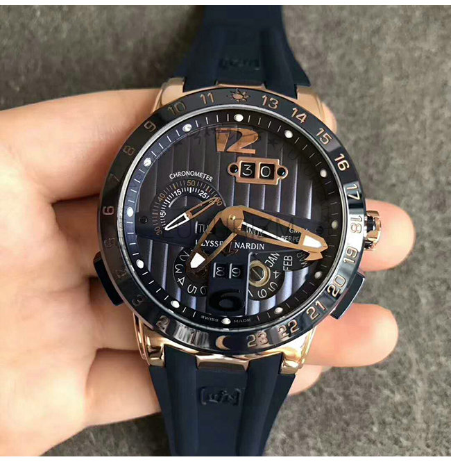 [스페셜오더]ULYSSE NARDIN-율리스 나르덴 엘 토로 퍼팩츄얼 캘린더 세라믹베젤 로즈골드 블랙다이얼 워치43mm